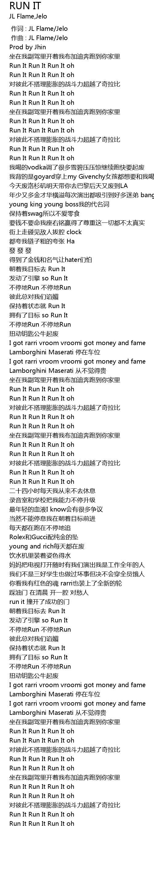 | [01:23.714] | bao chi zhe zhuang tai jiu Run It |