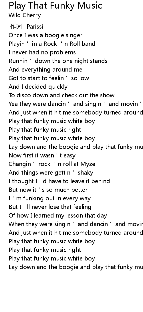 | [01:15.0] | Lay down and the boogie and play that funky music til you die |