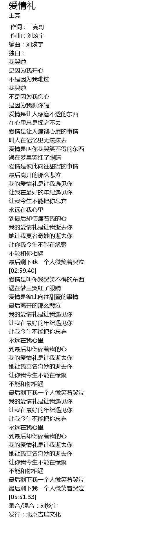 | [05:55.33] | 发行:北京吉瑞文化 |