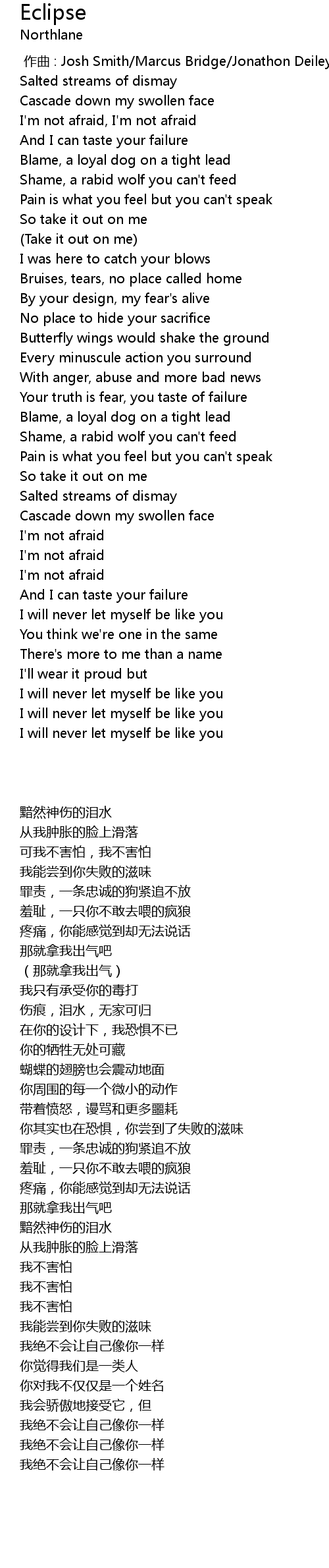 | [00:20.226] | I' m not afraid, I' m not afraid |