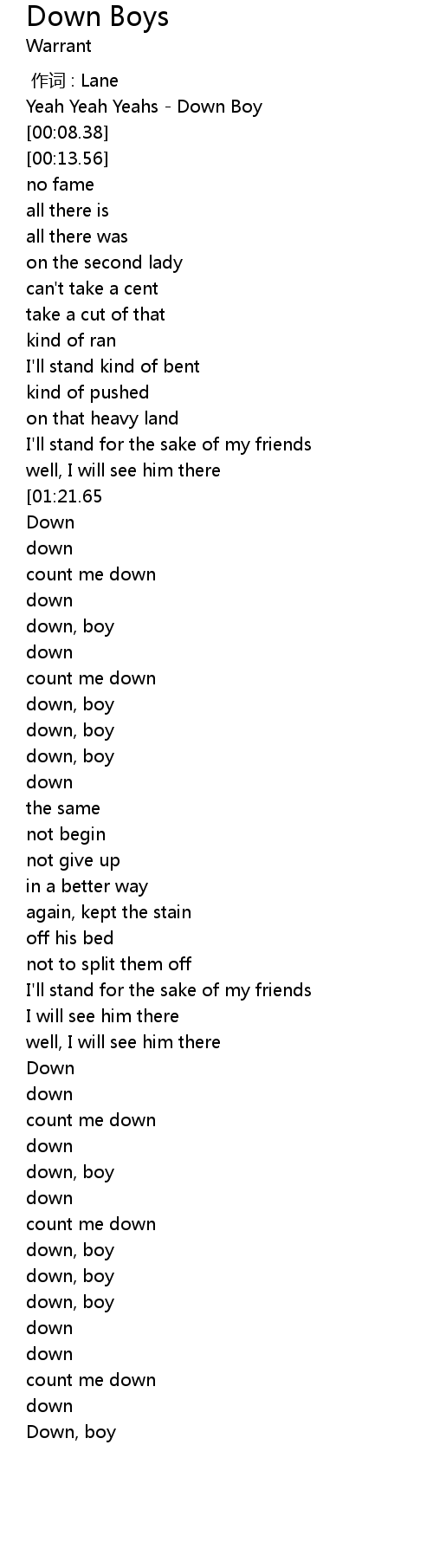 | [00:03.49] | Yeah Yeah Yeahs Down Boy |