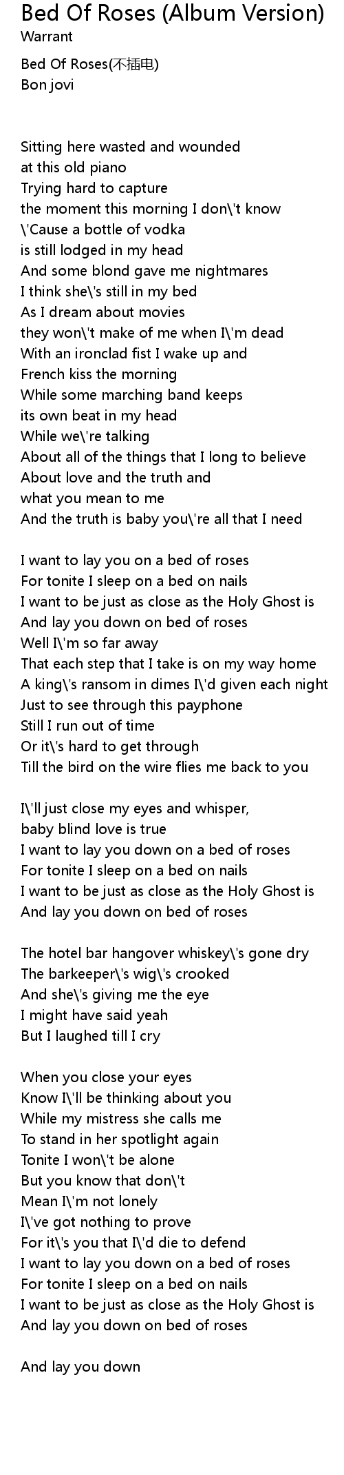 | Bed Of Roses(不插电) | |