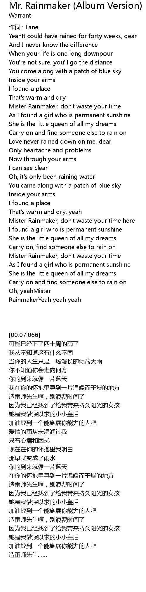 | Song | Mr. Rainmaker (Album Version) |