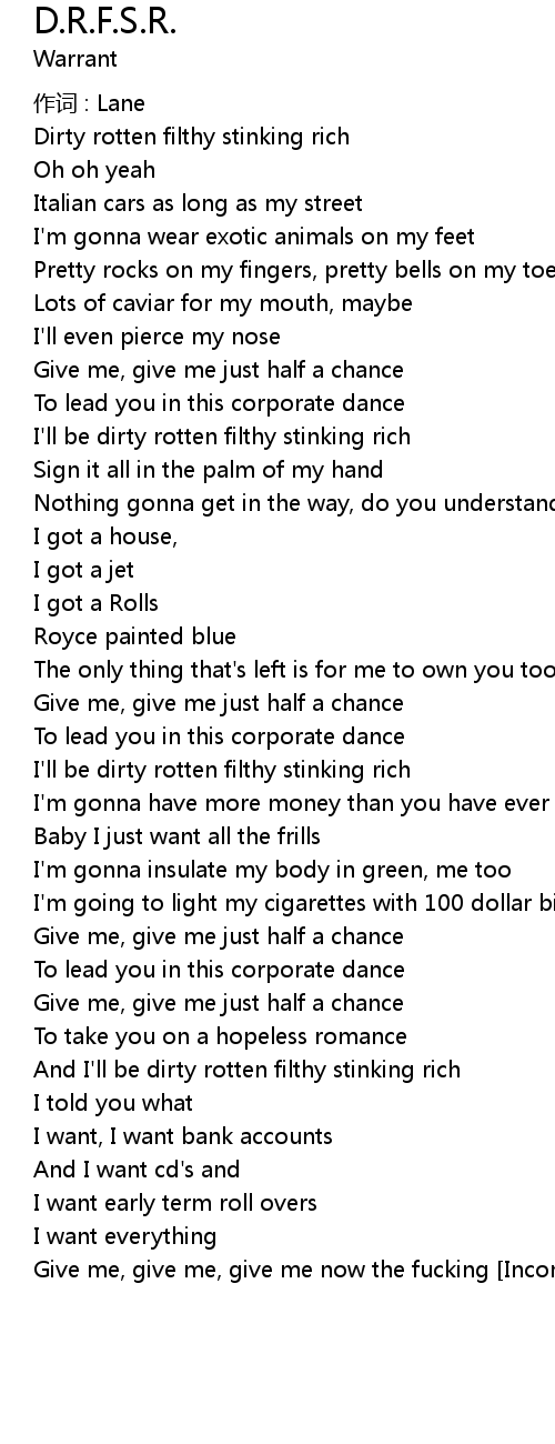 | And I'll be dirty rotten filthy stinking rich | |