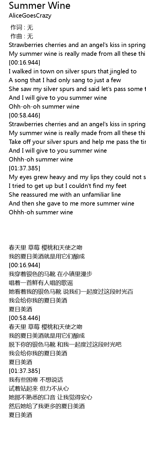 | [00:51.939] | Ohh-oh-oh summer wine |