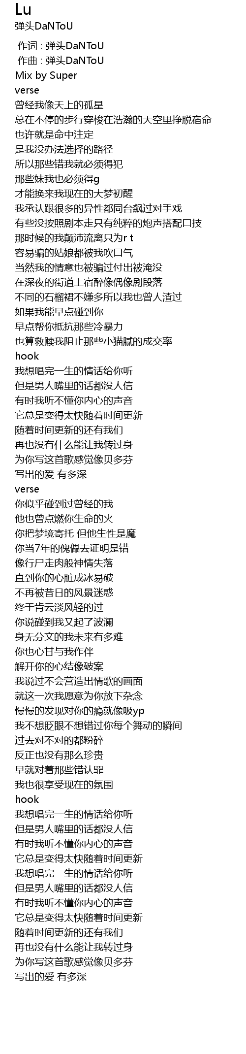| [00:00.00] | 作词 : 弹头DaNToU |