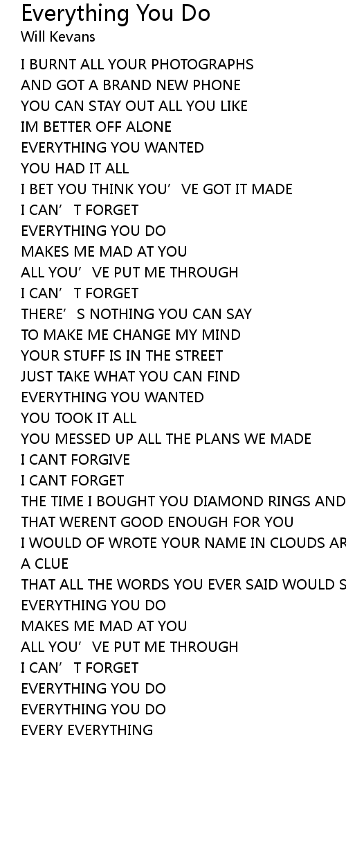 | I WOULD OF WROTE YOUR NAME IN CLOUDS AROUND THE WORLD, BACK THEN I DIDN' T HAVE A CLUE | |