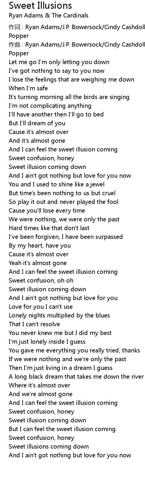 | 作词 : Ryan Adams/J.P. Bowersock/Cindy Cashdollar/Brad Pemberton/Catherine Popper | |