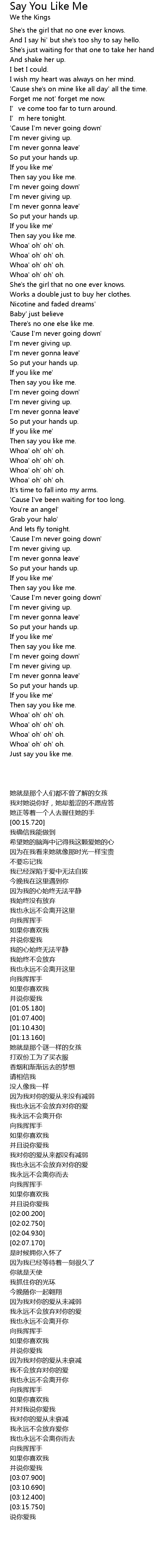 | [00:50.950] | Then say you like me. |