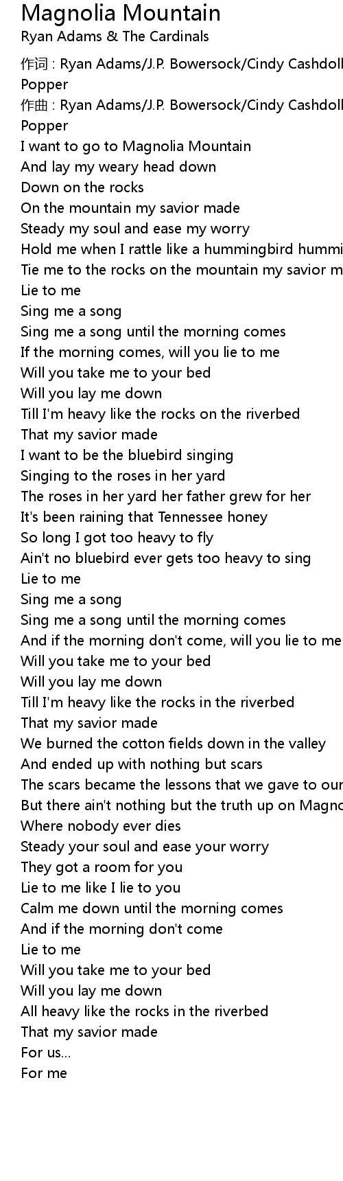 | 作词 : Ryan Adams/J.P. Bowersock/Cindy Cashdollar/Brad Pemberton/Catherine Popper | |