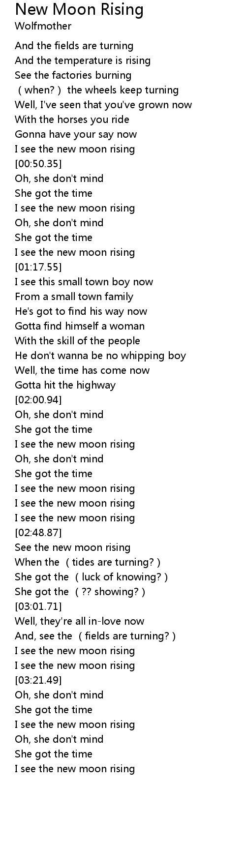 | [03:36.73] | I see the new moon rising |