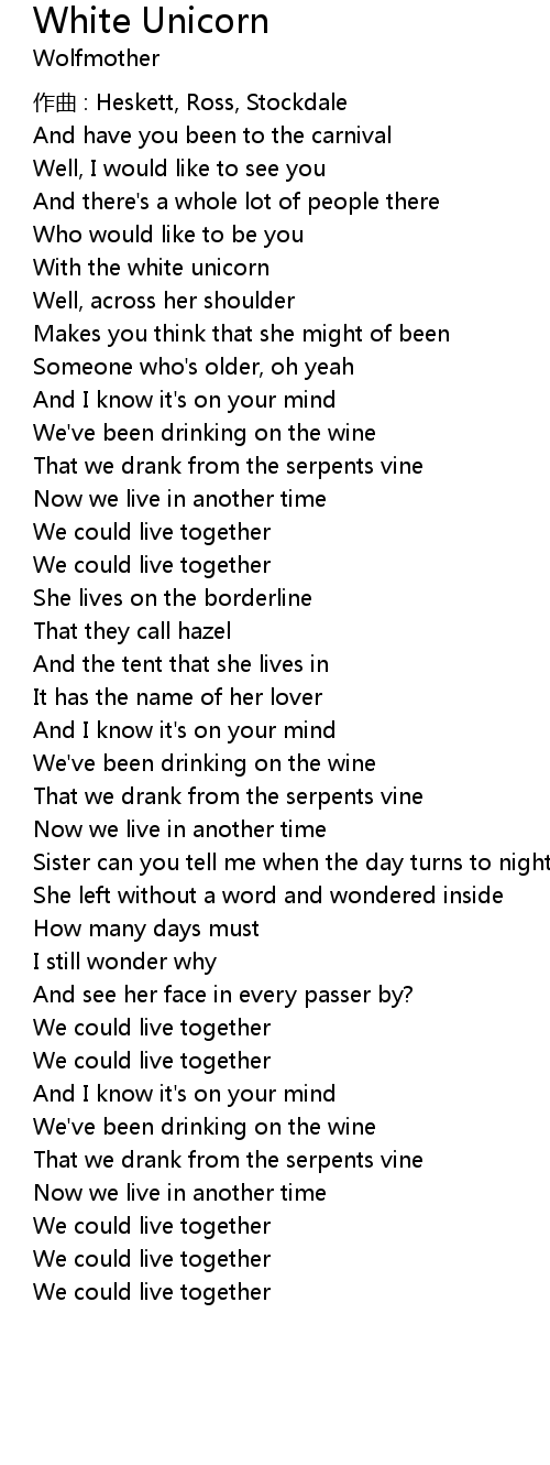 | Song | White Unicorn |