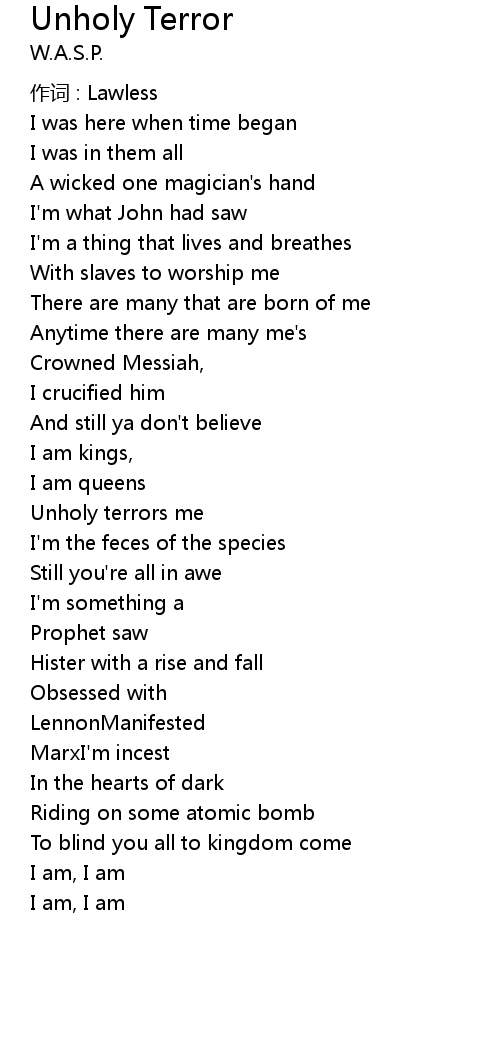 | Unholy terrors me | |