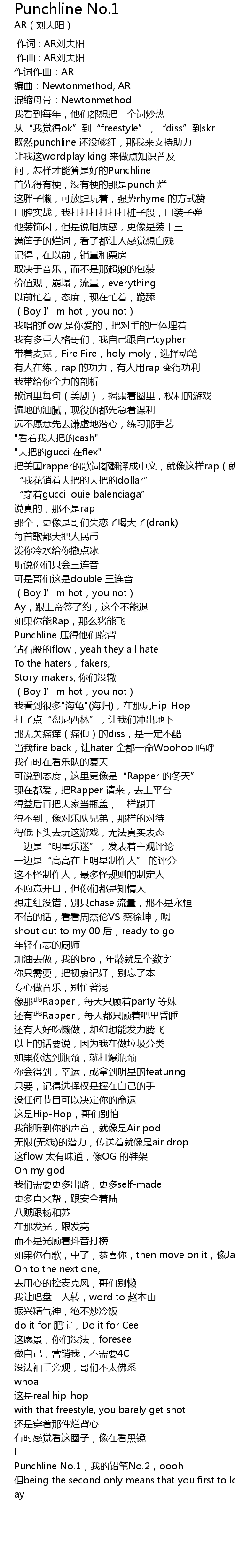 | [04:25.102] | Punchline No. 1, wo de qian bi No. 2, oooh |