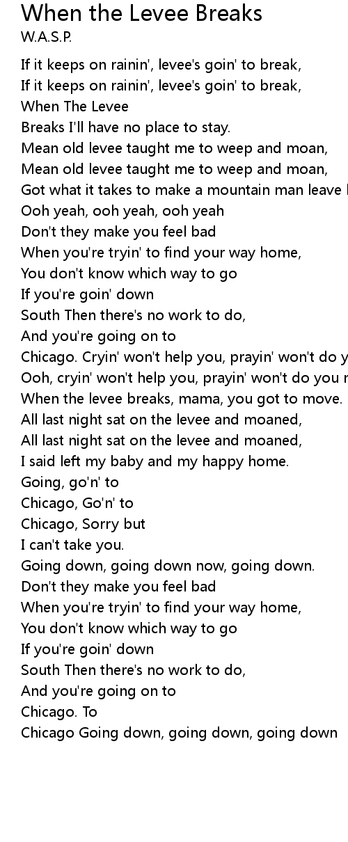 When the levee breaks, mama, you got to move. |