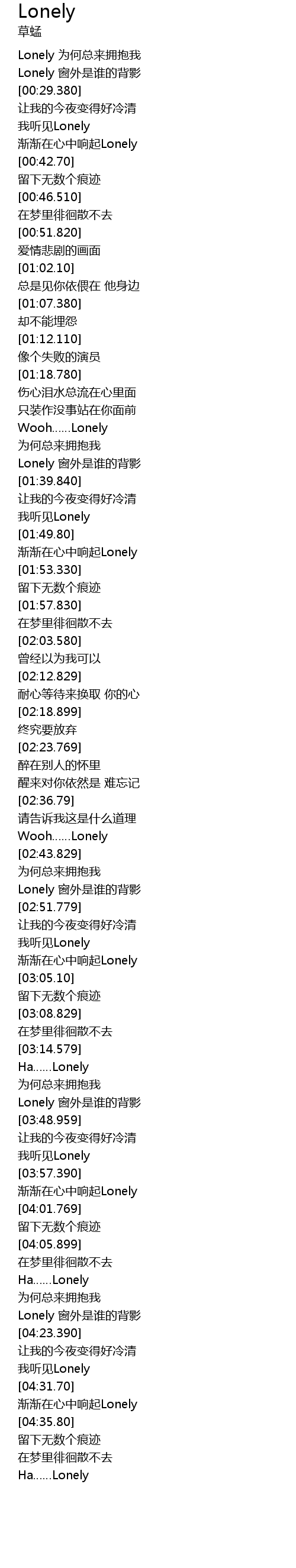 | [01:46.330] | wǒ tīng jiàn Lonely |