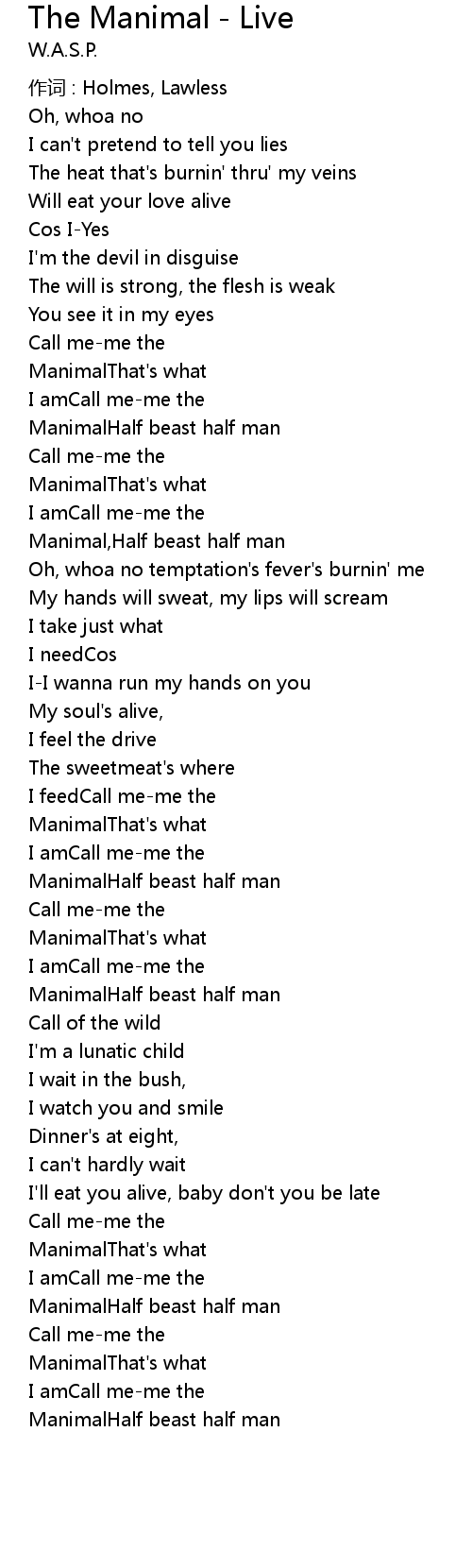 | Song | The Manimal - Live |