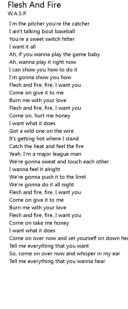 Flesh and fire, fire, I want you |