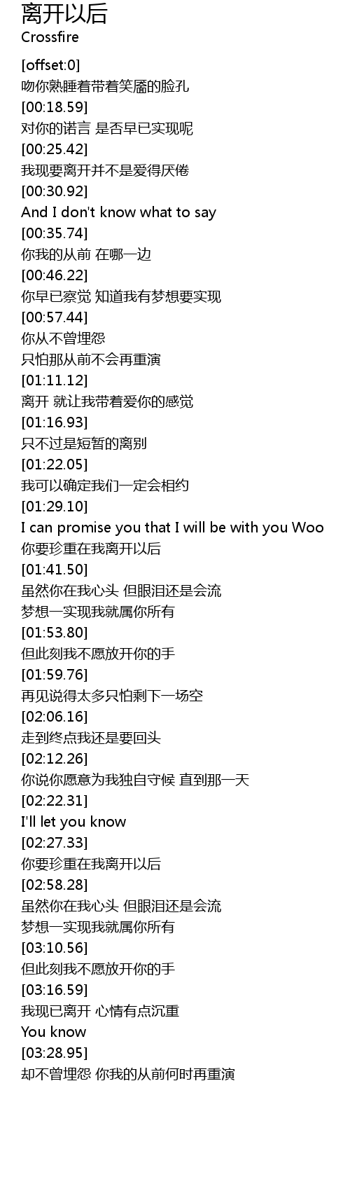 | [03:22.36] | 我现已离开 心情有点沉重 |