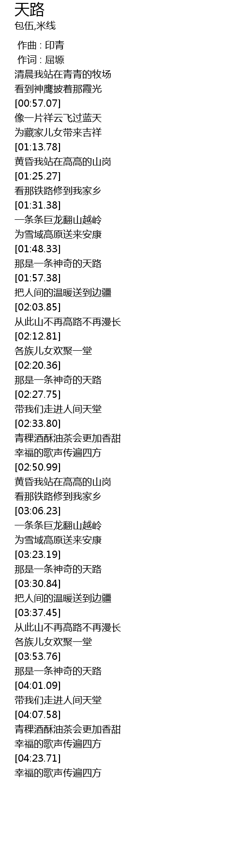 | [03:23.97] | 那是一条神奇的天路 |