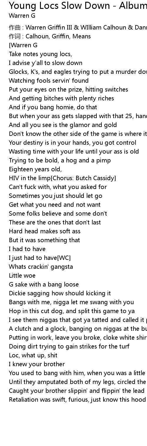 | Song | Young Locs Slow Down - Album Version (Explicit) |