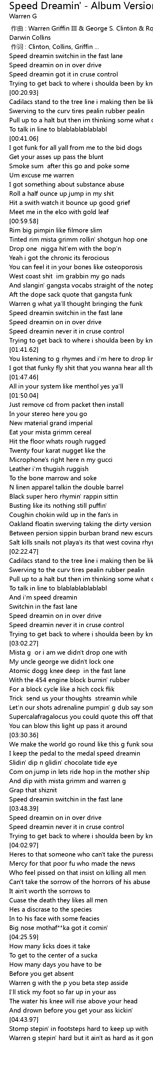 | [01:19.72] | Warren g what ya'll thought bringing the funk |