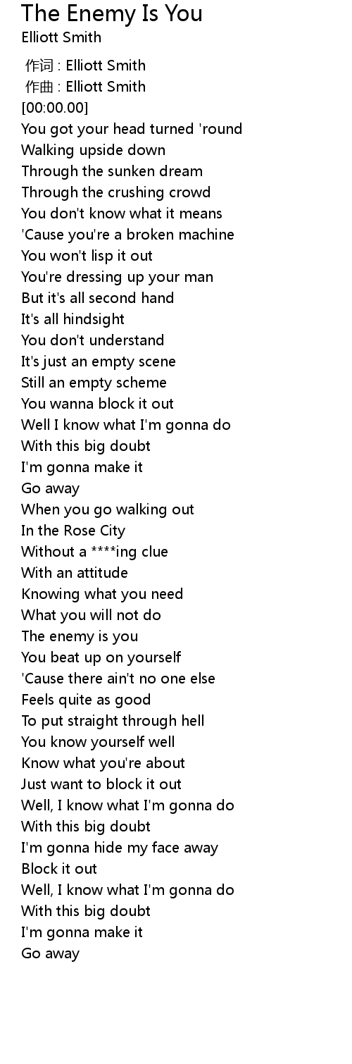| [01:27.01] | The enemy is you |