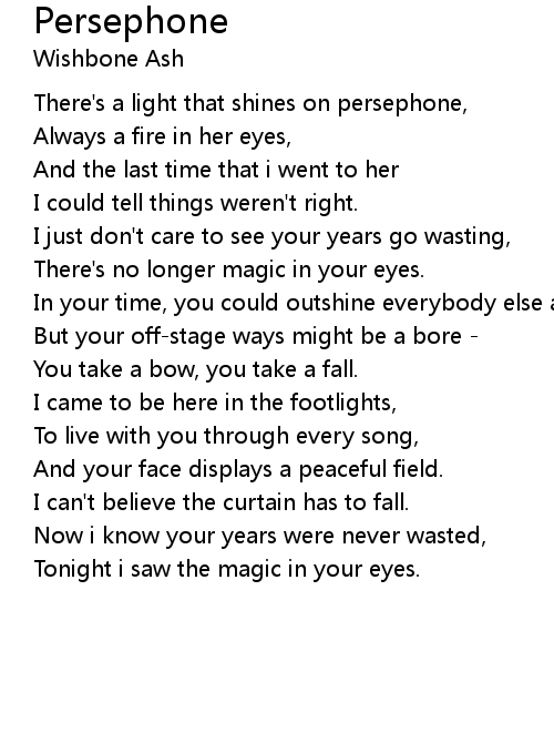 There's a light that shines on persephone, |