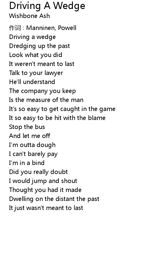 | Song | Driving A Wedge |