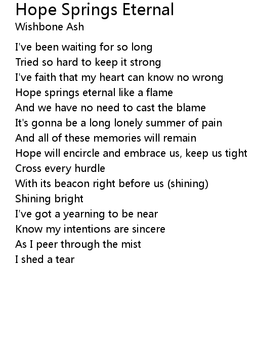 | Song | Hope Springs Eternal |