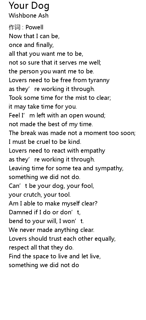| Can' t be your dog, your fool, | |