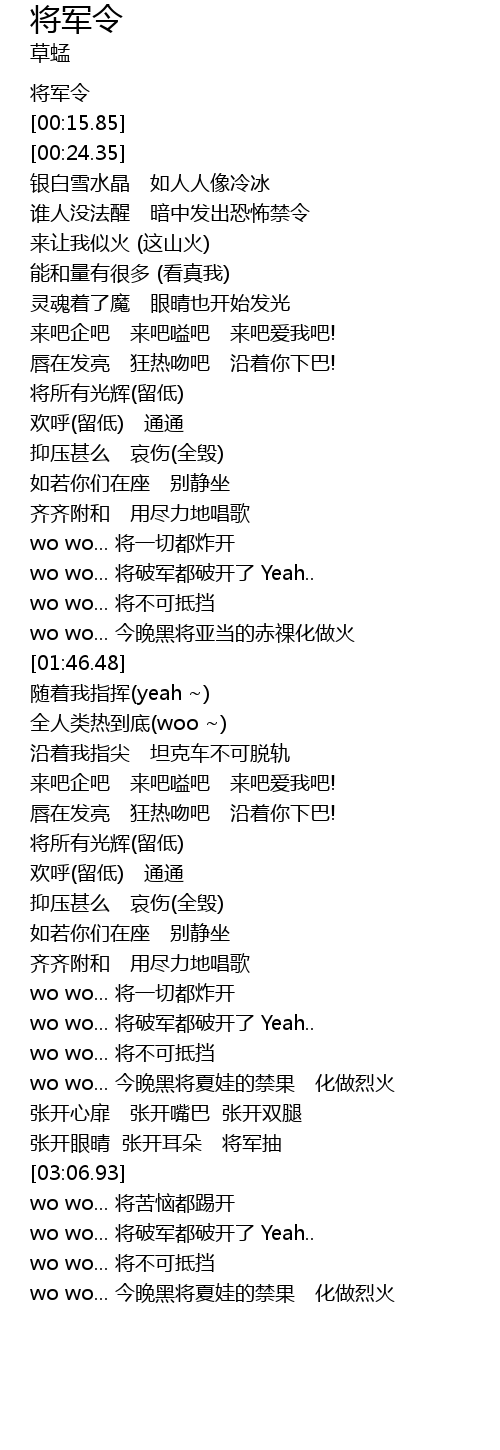 | [03:00.21] | 张开眼晴 张开耳朵 将军抽 |