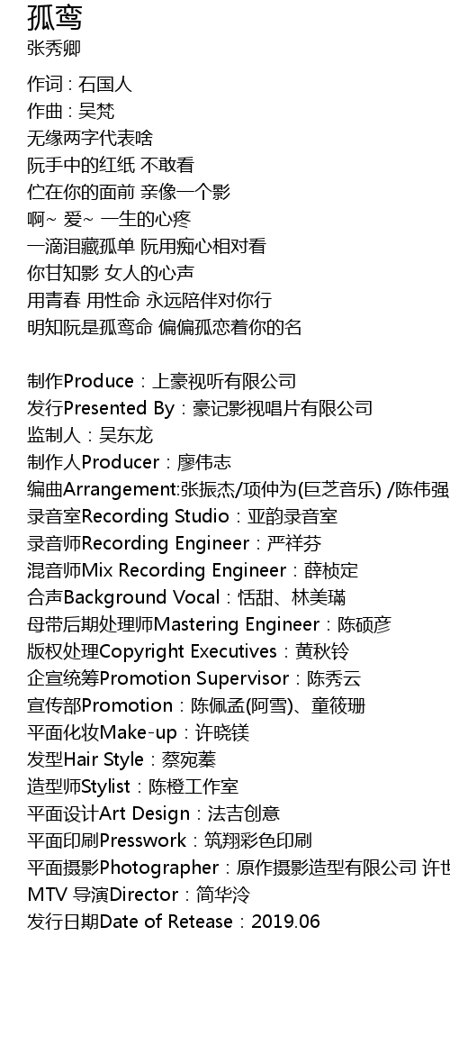 | lù yīn shī Recording Engineer: yán xiáng fēn | |