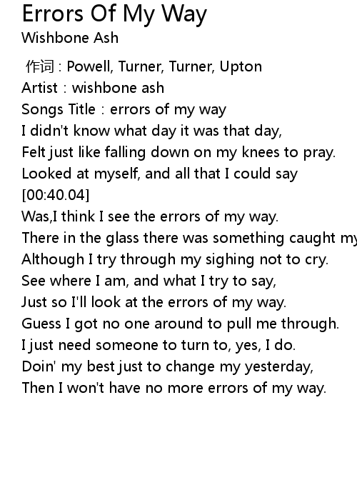 | [00:05.01] | Songs Title: errors of my way |