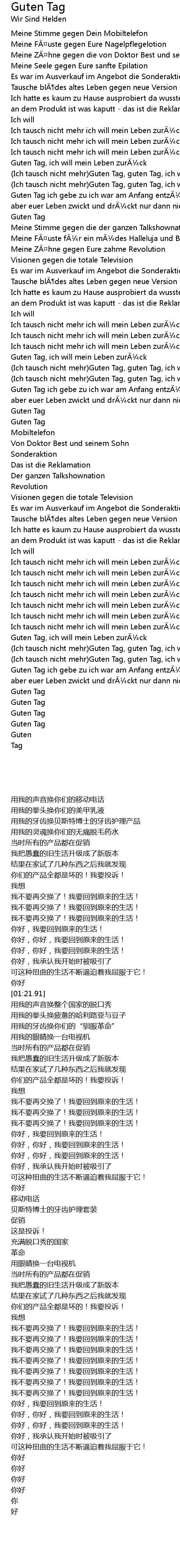 | (Ich tausch nicht mehr)Guten Tag, guten Tag, ich will mein Leben zurück | |