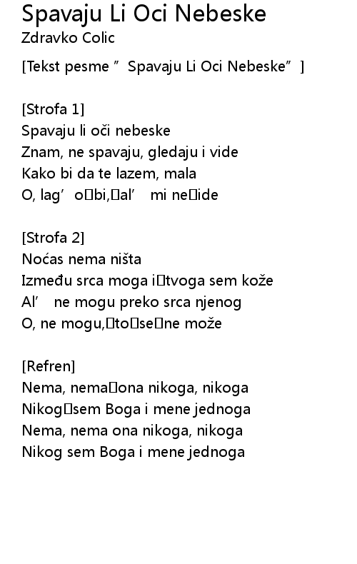 | Tekst pesme " Spavaju Li Oci Nebeske" | |