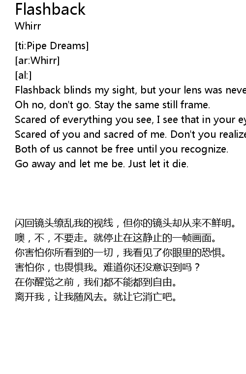 | [00:40.19] | Flashback blinds my sight, but your lens was never bright. |