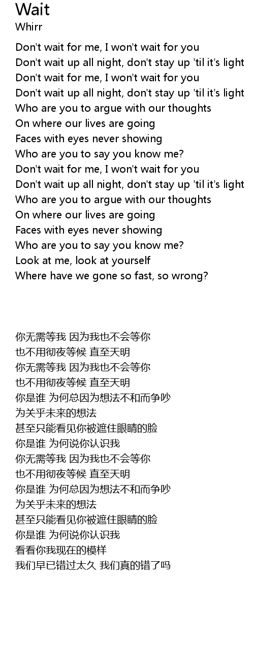 Don't wait for me, I won't wait for you |