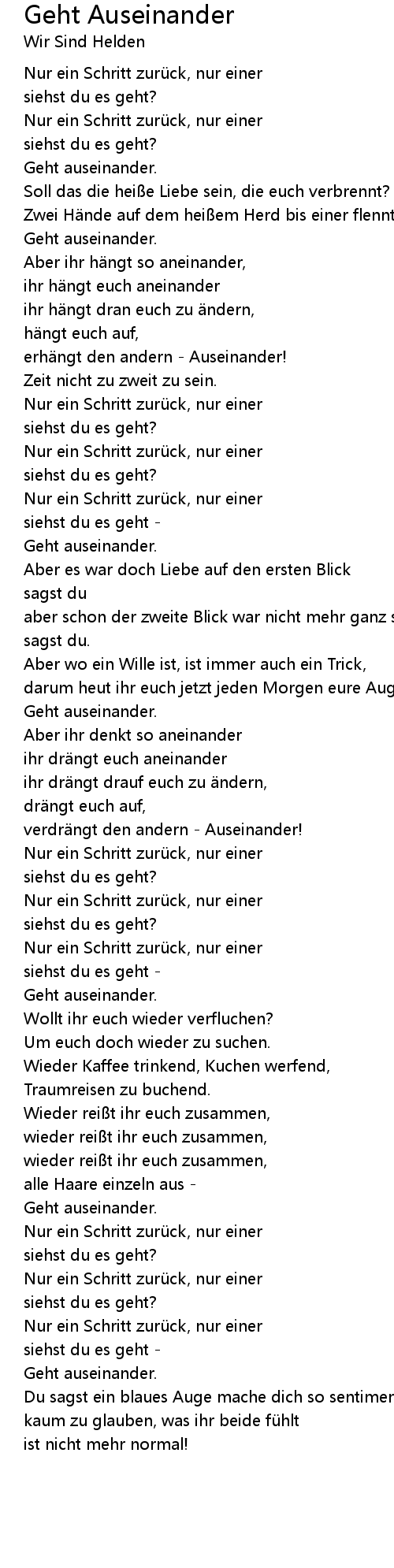 | Du sagst ein blaues Auge mache dich so sentimental | |