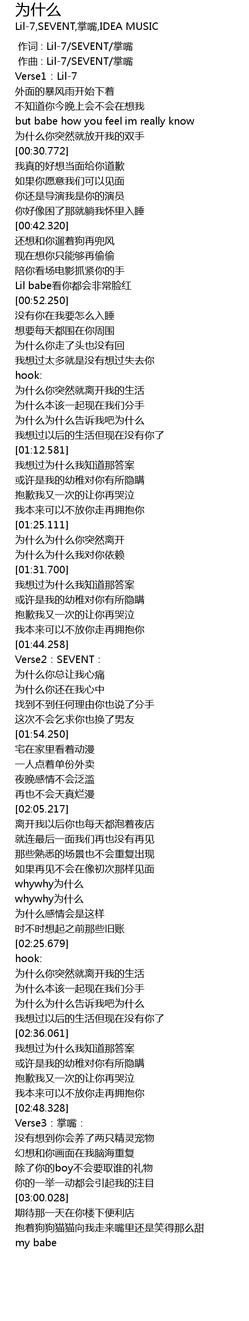 | [00:00.000] | 作词 : Lil-7/SEVENT/掌嘴 |