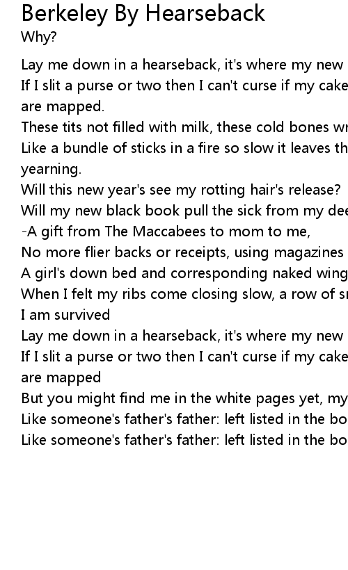 Lay me down in a hearseback, it's where my new best look is at. |