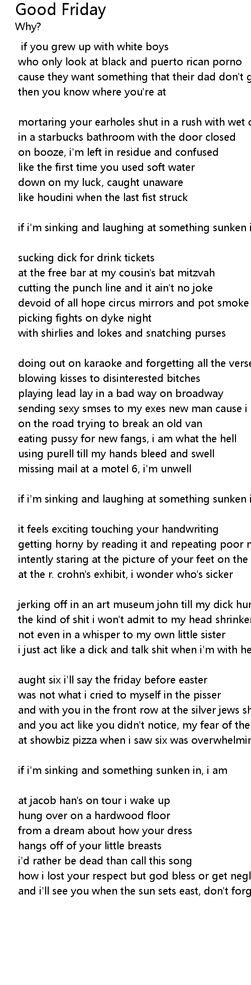 | if i'm sinking and something sunken in, i am | |