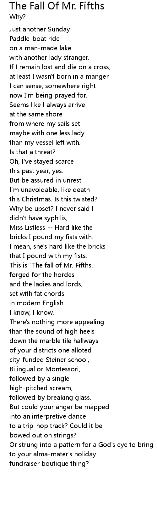 | This is "The fall of Mr. Fifths, | |
