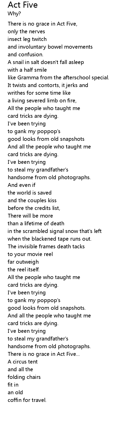 There is no grace in Act Five, |