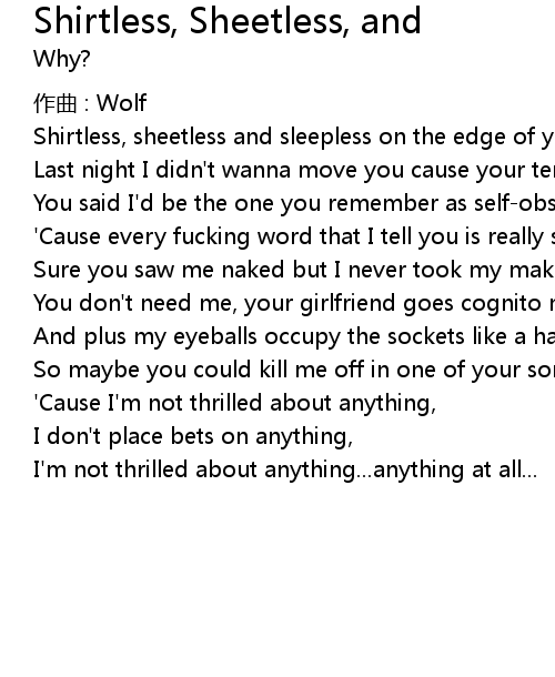 | Shirtless, sheetless and sleepless on the edge of your queensized bed, | |