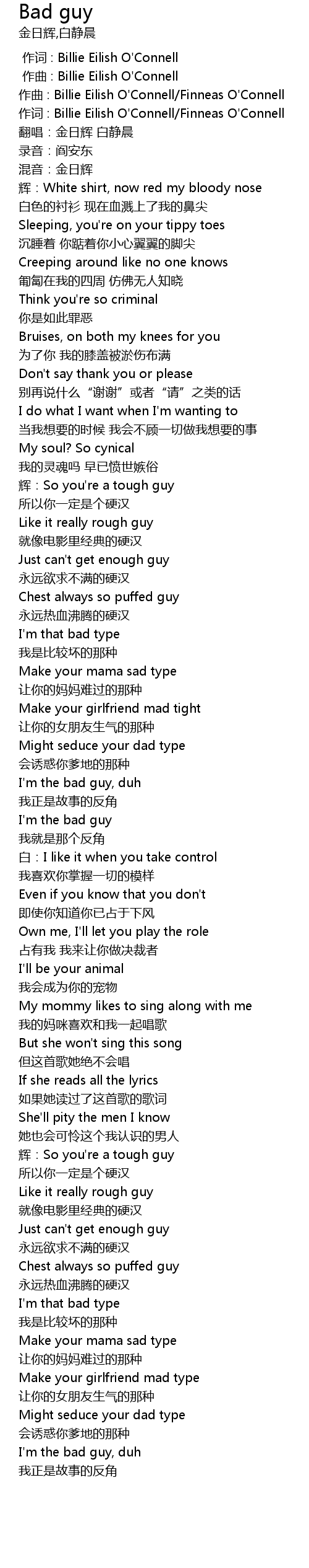 | [00:01.888] | 作曲 : Billie Eilish O'Connell/Finneas O'Connell |