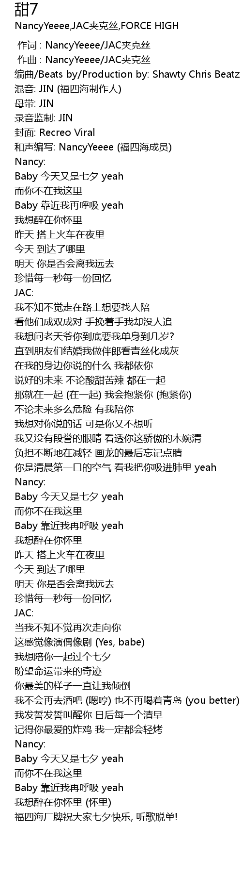 | [02:56.737] | Baby 今天又是七夕 yeah |