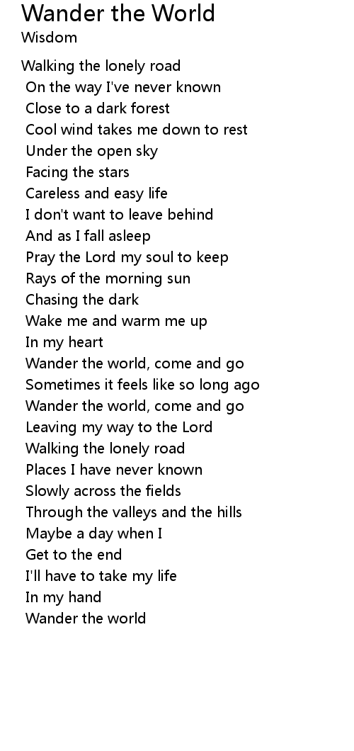 | Wander the world, come and go | |