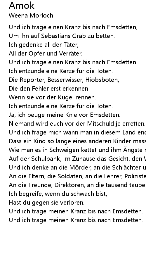 | Und ich trage einen Kranz bis nach Emsdetten, | |
