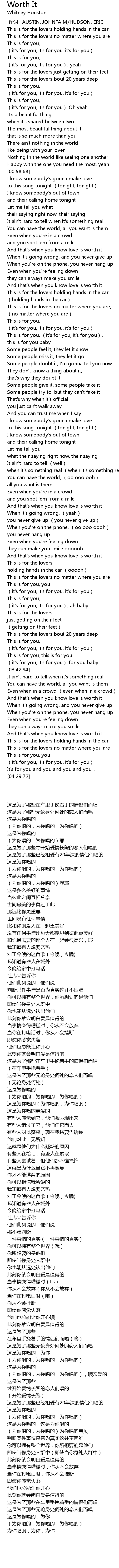 | [00:00.00] | 作词 : AUSTIN, JOHNTA M/HUDSON, ERIC |
